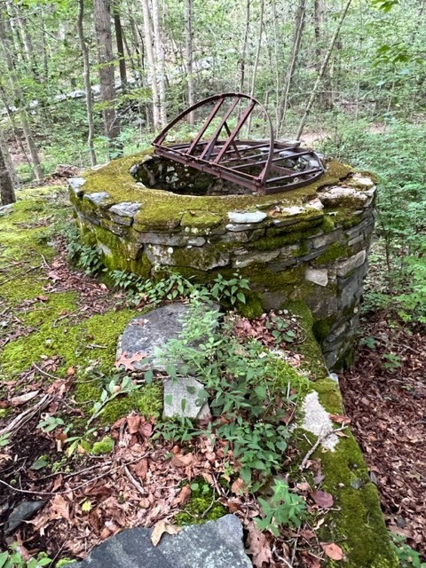 Use “Pattaconk Recreation Area” in your GPS for directions – it is off Cedar Lake Road in Chester (the new sign merely says Cockaponset- a Connecticut State Forest). Drive past the Reservoir until you see the yellow gate and park in the smaller lot on the left hand side. Walk between the boulders on the south side of the lot. You will see a yellow/green blaze. Almost immediately turn left to follow the blue trail to the yellow trail junction at a small footbridge. Cross the bridge, following the yellow blazes until you reach the entrance road. Turn right and follow the road for a short distance. Immediately after crossing a stream the yellow trail continues into the woods on your left. From the paved road to the dam visible in the distance look around for the ruins related to the old Pattaconk picnic area. On your right will be the incinerator, a building foundation that was likely an administration building, steps with an old handrail, and a well. On the left are the remains of an outdoor grill.