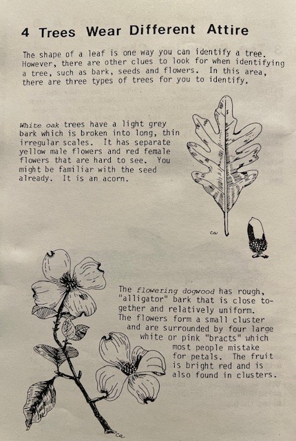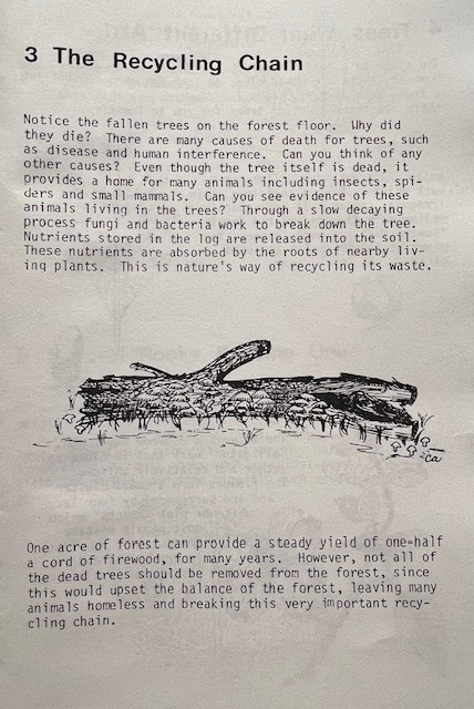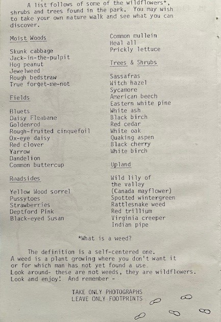 The following photos show the pages from the old Witches Hollow Nature Trail booklet.