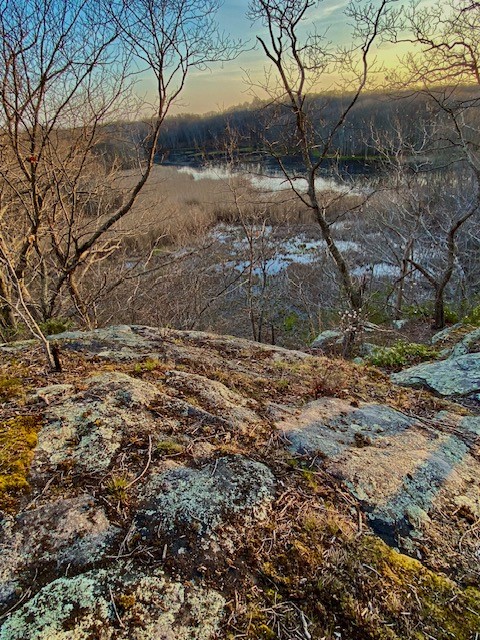Pequot Swamp Pond Loop Trail, 3.2 miles. In January of 2024 a friend and I parked in the Old Saybrook lot and hiked a clockwise loop. We walked along the road to the trailhead on the right, following the blue trail a short distance before taking a left on the red trail. The red trail is a wide cart path that is the old road past the former Ingham homestead. It passes by the edges of Pequot Swamp Pond where you can watch for turtles sunning themselves on logs as the weather gets warmer, and look for frogs. As you continue along the red trail you will pass streams and vernal pools that by mid-March be alive with salamanders and frogs. As you pass across the power line corridor, you may find snakes in the warmer months soaking up the sun. Where the red trail forks we stayed to the right, then continued to green then blue, doing a wide circle. On the blue trail, watch for an unmarked trail to your right that leads to an overlook of Pequot Swamp Pond. When we got back to the junction with the red trail, we discovered a new connector to the parking lot, which allowed us to avoid the road walk. This trail is well marked in the field, but is not shown on the map. NOTE: There are 2 different parking lots on Ingham Hill Road in Essex as well as the one on Ingham Hill Road in Old Saybrook, but Ingham Hill Road does NOT connect between the two towns so be careful if you are using GPS that it is taking you to the right place.