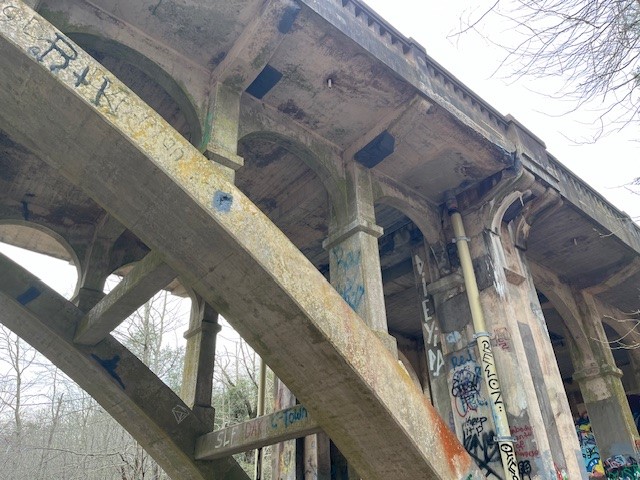 Well, it turned out he was, just not about the falls. Where I saw graffiti, he saw stunning architectural detail and had to know more. It turns out this bridge, which connects the towns of Killingworth and Madison, was listed in the National Register of Historic Places in 2004. Bridge No. 1132, as it is called, was built in 1934, and according to Wikipedia “is one of a small number of open-spandrel concrete bridges in the state, and was noted for its aesthetics at the time of its construction.” This is the type of place that I look forward to revisiting in all the different seasons. For a trail map click HERE.