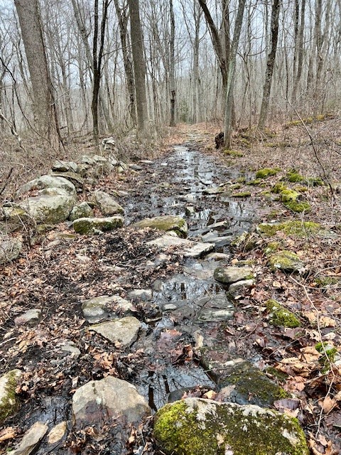 This parcel is owned by the Mary L. Jobe Akeley Trust and stewarded by the Denison Pequotsepos Nature Center. There is a pullout for parking on River Road just past the chained driveway and sign. After entering the drive, I took the first unmarked trail to the left, starting my walk in a clockwise loop. The trail climbed a short distance to a fence and stone seat looking out over the Mystic River to Mystic Seaport. Continuing on, I reached an open area that seemed like an old garden with a water pump and strategically placed rocks. I continued through a break in the stone wall. At one point I observed the crumbled foundation of an old building. When in doubt I just stayed to the left. The trail generally followed the perimeter of the sanctuary, and I used AllTrails to judge where I was on the parcel, even though the specific trails aren’t shown. I eventually popped out on the driveway near the top and noticed a trail sign that said “Private Nature Preserve – Access by current DPNC members and by permission only”. I found this to be at odds with the information on the website, which I double-checked afterwards and which clearly states that the trails are open free to the public from dawn to dusk. I choose to believe that the website is the most up-to-date. Following the driveway back down, I stopped to look at the old cisterns surrounded by protective fencing. Dogs are permitted on leash. For more information, visit their website HERE.