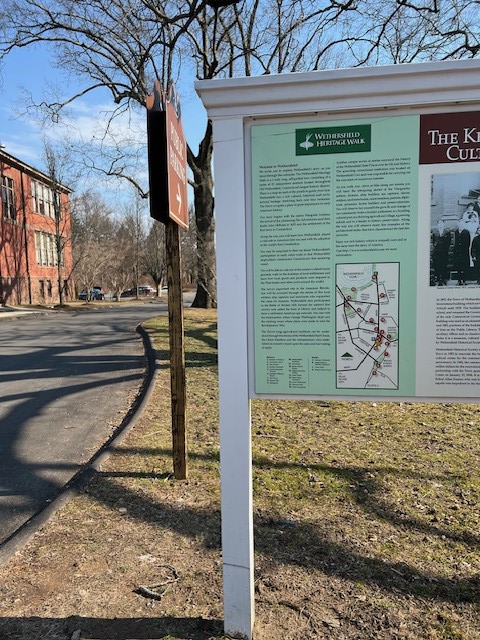 My final destination before emerging from this rabbit hole was the town of Wethersfield, which I learned had published a brochure and map for a 3 mile Heritage Walk featuring 22 points of interest highlighting the town’s history. I chose to create my own walking routes centered on my interest in the Pequot War. I will share my routes, but recommend extending your visit to include any of the sites that interest you. With a promise of lunch and an afternoon latte I convinced my husband, Tom, to join me on this adventure. You can find a link to the map HERE. For cyclists, there is a recommended 8 mile bike route called the Heritage Walk Bikeway Path. You can find that map HERE .