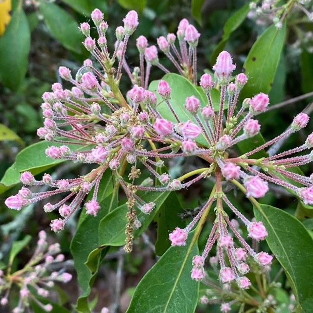 Mountain laurel is so ubiquitous in the wild that until I started researching it I was not aware how popular it is as an ornamental plant for gardens and how many cultivars (cultivated varieties) there are. Please know that collecting laurels on state land is against Connecticut State Law, and all parts of the plant are highly toxic, so admire the flowers but be careful around them and do not dig them up. In his 1997 book, Kalmia: Mountain Laurel and Related Species, Richard Jaynes wrote “I encourage any and all who have the opportunity to search for unusual forms of laurel, whether in the wild, nursery or garden.” That got me curious, as the blooms all look the same to me. So this June I will pay closer attention to the individual flowers.  Jaynes explains that the plant was named for the Swedish Botanist, Peter Kalm, a student of Carolus Linnaeus (the man who invented our current system of taxonomy) who came to the New World in 1748 as a naturalist in search of plants suitable for growing in Sweden. One of the plants he collected was mountain laurel, and Linnaeus named the genera Kalmia to honor him. There are seven species of Kalmia in North America.