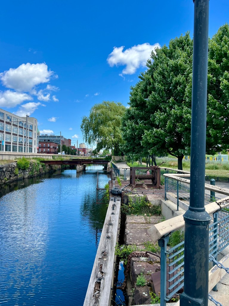 It is hard to exaggerate the importance of rivers and streams to New England’s early industrial history for both transportation and power. This becomes evident when you start exploring trails along Connecticut’s waterways. There is hardly a river or stream trail I have explored that does not pass the ruins of an old dam and/or mill. Often, when you live in a place, the things that surround you become “part of the furniture” (defined in the Cambridge online dictionary as “something…so familiar that you no longer notice it”). Sometimes you need an outsider to shift your focus, like when an English friend mentioned to me last year that she had visited Lowell National Historical Park (LNHP). I was gobsmacked! How did I not know about this National Park? Growing up in a Boston suburb, I associated “Lowell” with “depressed mill town”. My excuse for completely missing Lowell’s revitalization is that I moved to Connecticut in the 1980’s when those renewal efforts were in their infancy, and my attention turned towards important Connecticut things like becoming a UCONN women’s basketball fan.