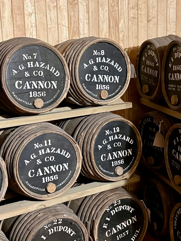 I first learned of Hazardville, CT circuitously – while touring Fort Macon State Park in Atlantic Beach, North Carolina last September. Fort Macon was built in the aftermath of the War of 1812 as part of the Federal Government’s Third System of Defense strategy to protect America’s coastline. (Fort Trumbull, in New London, was another fort built under this program). Peering into the gunpowder storage room I saw a stack of barrels stamped “A. G. Hazard & Co. CANNON 1856. Hazardville, Connecticut.” Intrigued, I later learned that Colonel Augustus George Hazard owned and operated the Hazard Powder Company in Enfield, Connecticut. According to the Enfield Historical Society: “In 1843, Col. Augustus Hazard -the man after whom the Village of Hazardville was named- established the Hazard Powder Company [which] supplied a significant amount of the gunpowder used during the Civil War, but after decades of declined production, it closed in 1913 after a major explosion.” The town name and the fact that manufacturing gunpowder was a hazardous occupation turned out to be entirely coincidental, if not ironic.