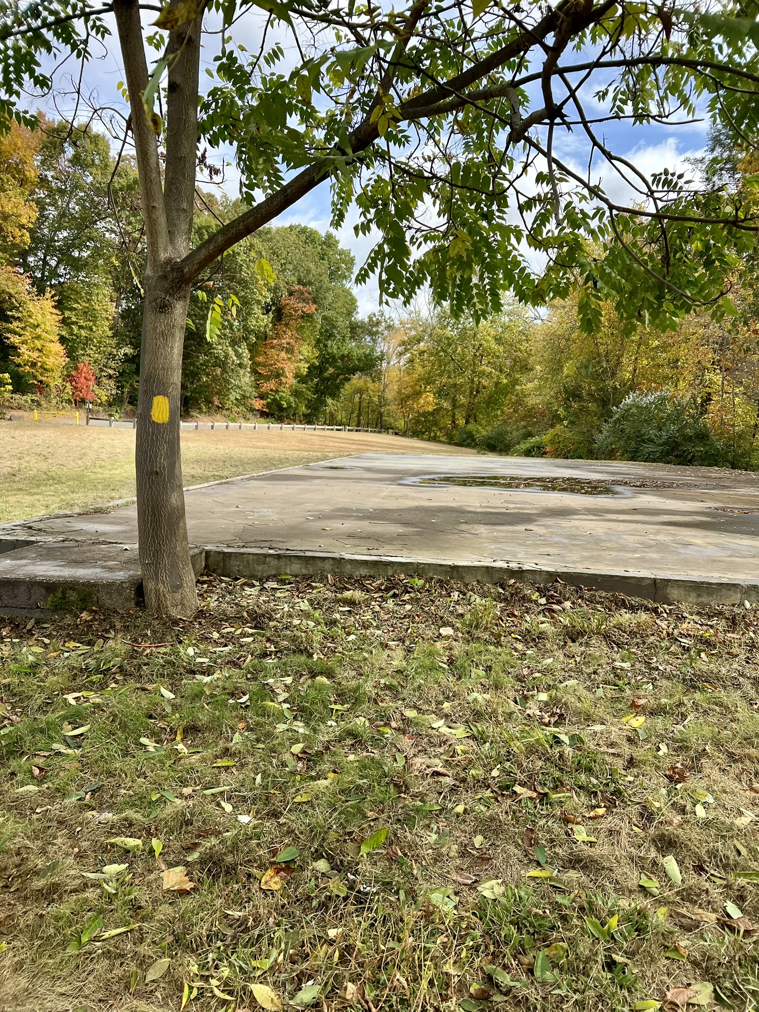 In Google Maps, use: Scantic River State Park – West. We visited this parcel after our first visit to the “Powder Hollow” block. Most of these trails are blazed in yellow, although there are some unmarked sections that create short loops. The AllTrails map helped. While there are no ruins, it made for a pleasant hike along the river. From the parking lot the yellow trail heads downhill toward the river. When the river came into view we continued onto an unmarked trail that leads to the bank. At the river’s edge we noticed two folding chairs on the opposite bank, not realizing that we would be enjoying a snack at that same spot the following week! From there we walked alongside the river until the trail cut back in and up to rejoin the yellow trail. At the next two junctions we stayed left, following the trail all the way to what is marked on the map as a warehouse. In the field it is merely a large concrete slab on the edge of a field. Circling back, we followed the trail along the river this time, until it looped up to meet the trail we came in on.