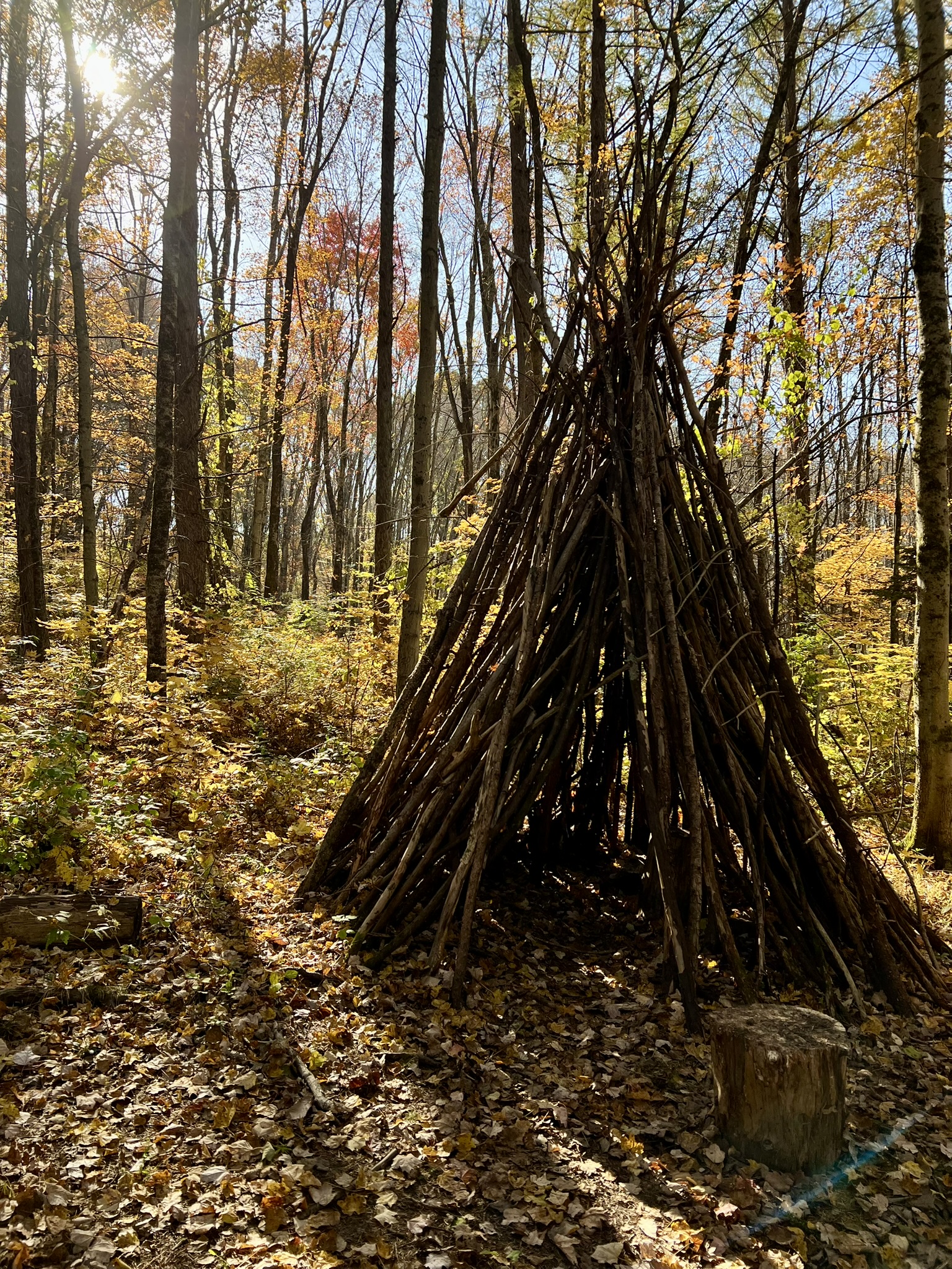 From left top corner, clockwise: the trailhead and kiosk; the river; one of many bridges; one of several benches; the ridge; small creek with eroded banks; a random tepee; trail along the river