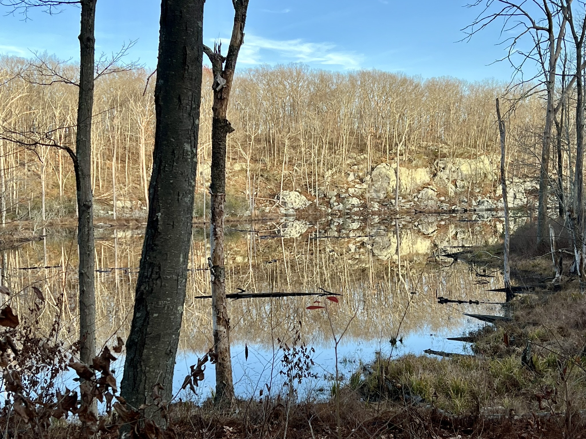 We returned a few days later to knock out a few more points. This time we chose to go counterclockwise around the pond searching for CPs 3, 2, 11, 4, 1 and 6. As we rounded the southern edge of the pond I felt I was hitting my stride. We discovered an old foundation along the way, and seeing the pond from the western bank was a treat. By the time we found CP 6 it was getting late, so we headed north on the trail to the junction of Ruth Hill Road and back to our car. This spring I hope to get back out to tackle CPs 8 and 9, which are further off trail and should be a real challenge.