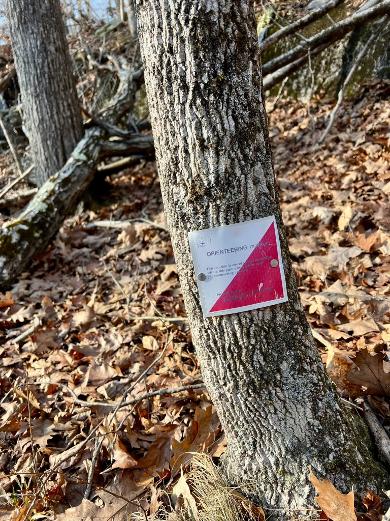 While hiking in Madison’s Rockland Preserve in January of 2024 I stumbled across an old orienteering course I hadn’t heard of before. I was intrigued. Weeks later, I read about a new orienteering course in Haddam. I filed these away for a future blog post. When the last of the leaves fell I pulled out my orienteering folder (literally a paper folder, as I am old school) and decided to start exploring. Miriam-Webster defines orienteering as a competitive or non-competitive recreational activity in which participants find their way over an unfamiliar course (as in the woods) using a map and compass.