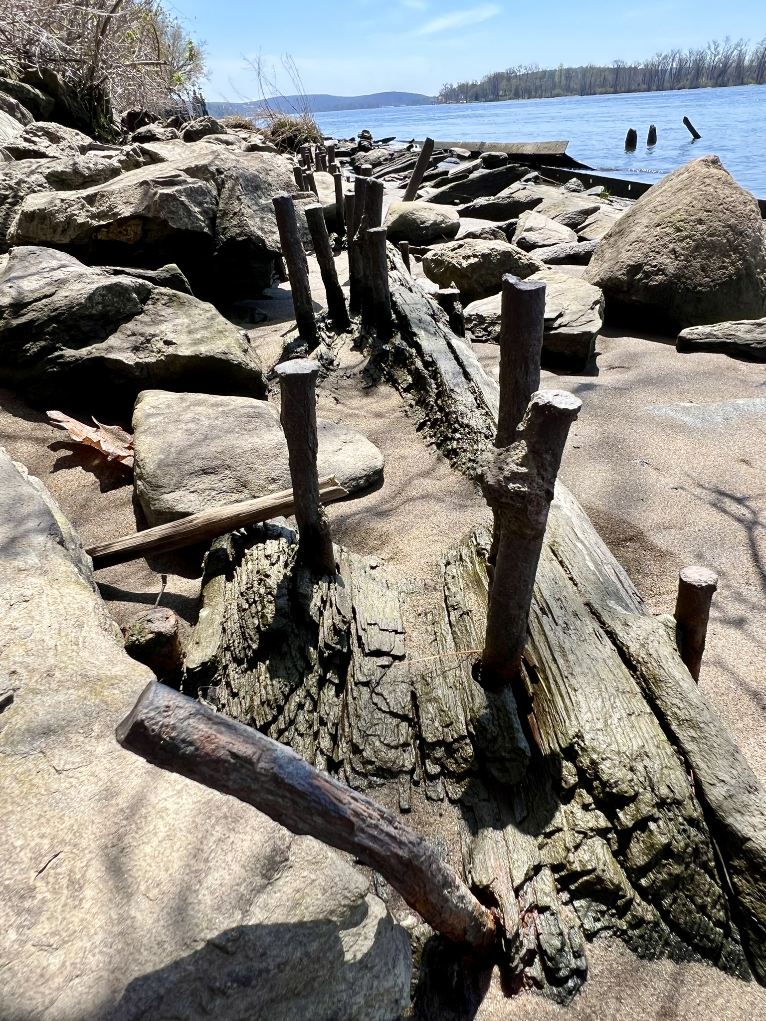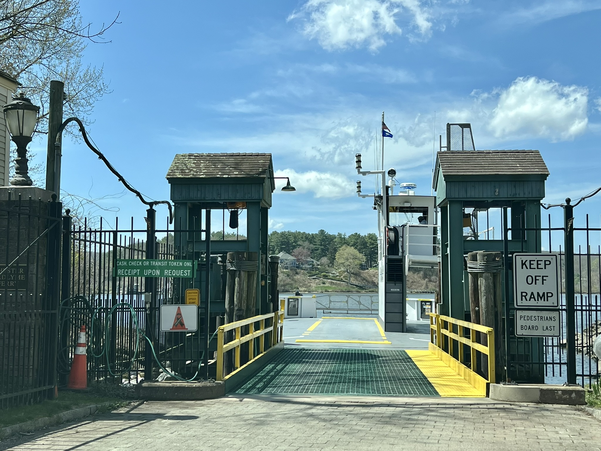 After I returned home I discovered videos online explaining some features I had overlooked, as well as this more informative history and trails map created by the Friends of Gillette Castle. I learned from one video that at low tide, I would be able to see some of the historical remains of the Aunt Polly, Gillette’s 142’ long boat. According to legend, Gillette was cruising in the Aunt Polly in 1913, when he stopped at the Ferry Landing. Exploring the adjacent hillside and seeing the incredible views, he decided this was the spot where he would build his retirement home. The boat sprung some leaks and was permanently moored in 1924, then caught fire and was destroyed in 1932. Another video explains the history of the wooden house, which Gillette built for his valet and good friend, Yukitaka Osaki. I returned a few days later at low tide, this time accessing the area from the Hadlyme Ferry Boat Launch parking lot. Sure enough, I found remnants of the Aunt Polly along the beach across from the hiking trail stairs. I then wandered over to the Osaki House, where I discovered an informational sign describing Yukitaka Osaki’s history. From this location, you can take a ride on the historic Chester/Hadlyme Ferry, detailed below.