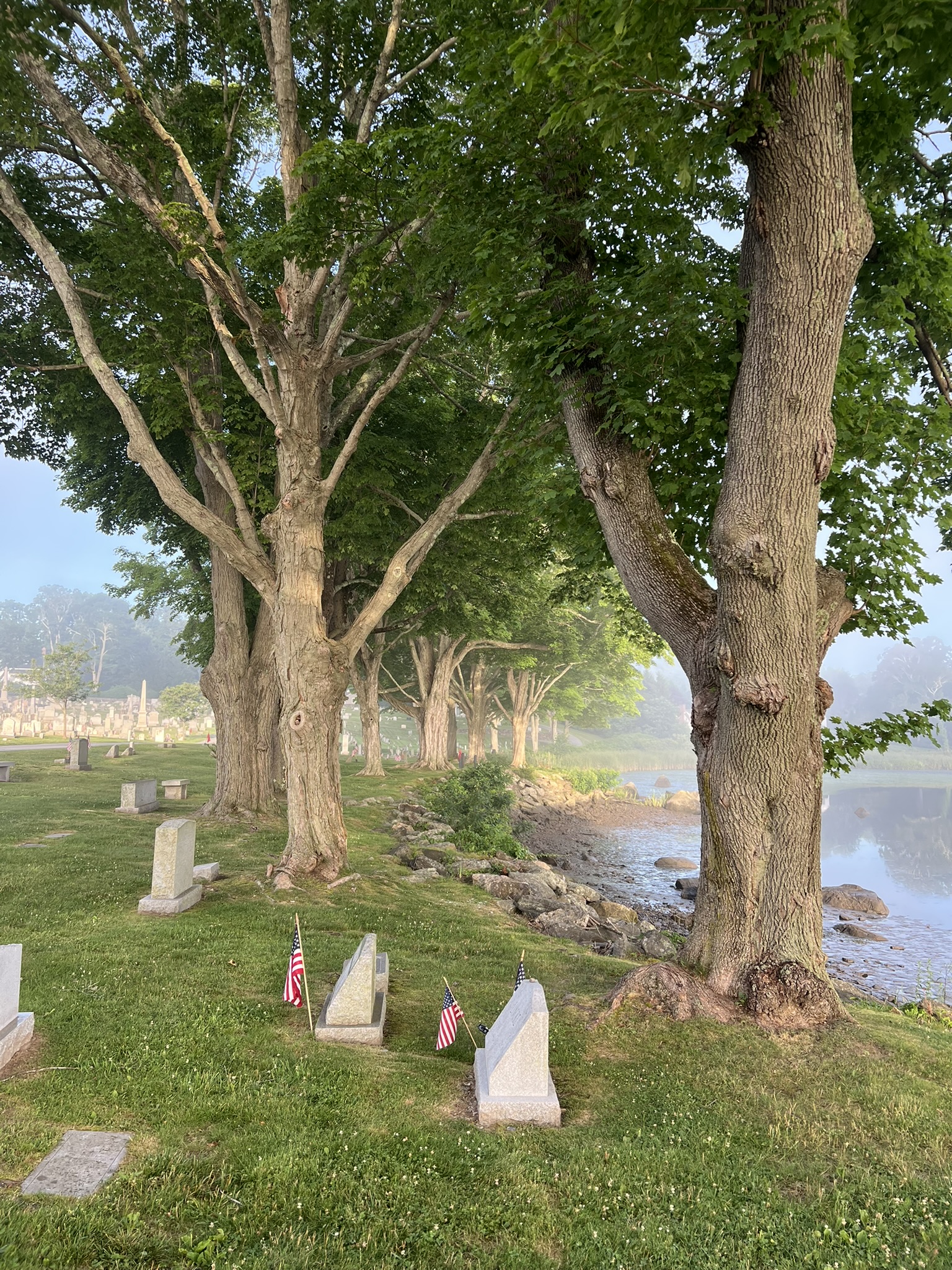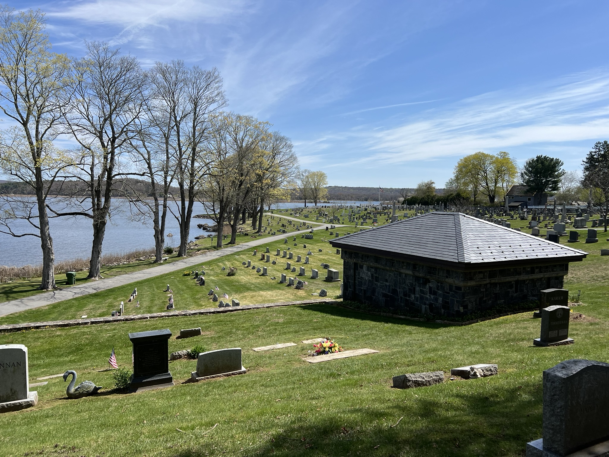 I learned about this cemetery from the Connecticut River Gateway Commissions Interactive Map. Curiously, the cemetery does not appear on Google Maps. You can find it in Apple Maps as “River View Cemetery” and in Waze as “Riverview Cemetery”. It is a ¼ mile walk from the rotary at the intersection of Main St. and North Main St. Heading north on North Main Street, the entrance is between 2 stone pillars on the right after passing Little Point Street. You can drive in as well. There is a small pullout for about 2 cars at the end of the circular drive. As with any cemetery, be respectful and follow the rules, which are posted on a large sign near the entrance. What a delightful spot! There are many impressive old trees to provide welcome shade in the summer, as well as numerous benches. From the stone patio at the far end there are views into Essex Harbor as well as sweeping river views. While there, take the time to walk amongst the headstones. Many of the graves date back to the 1700’s, and include veterans from as far back as the Revolutionary War.