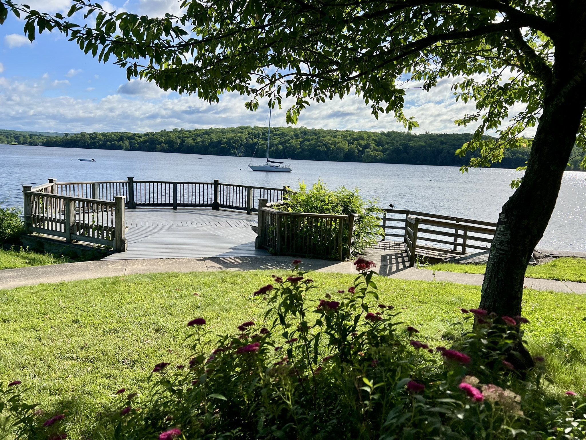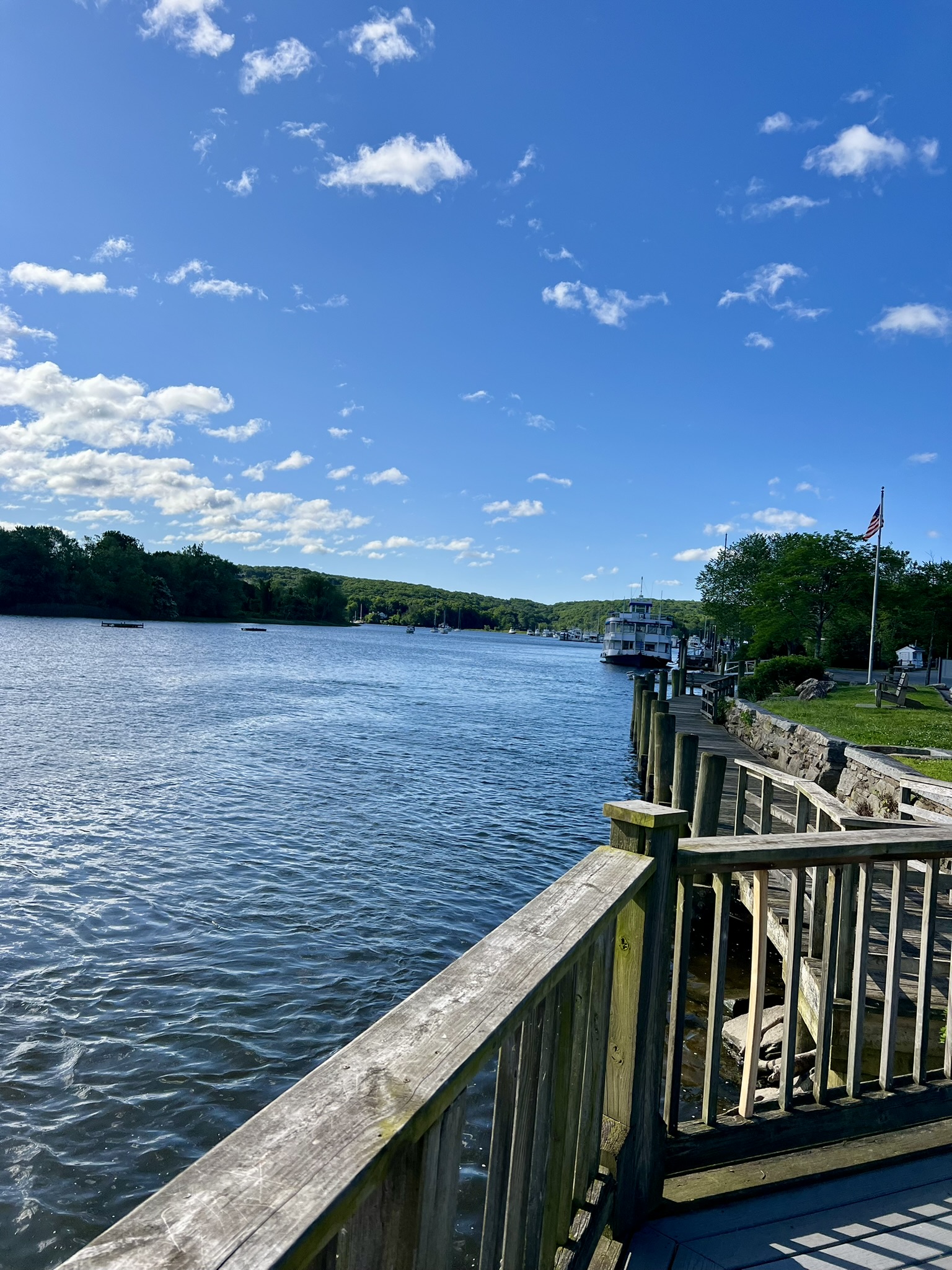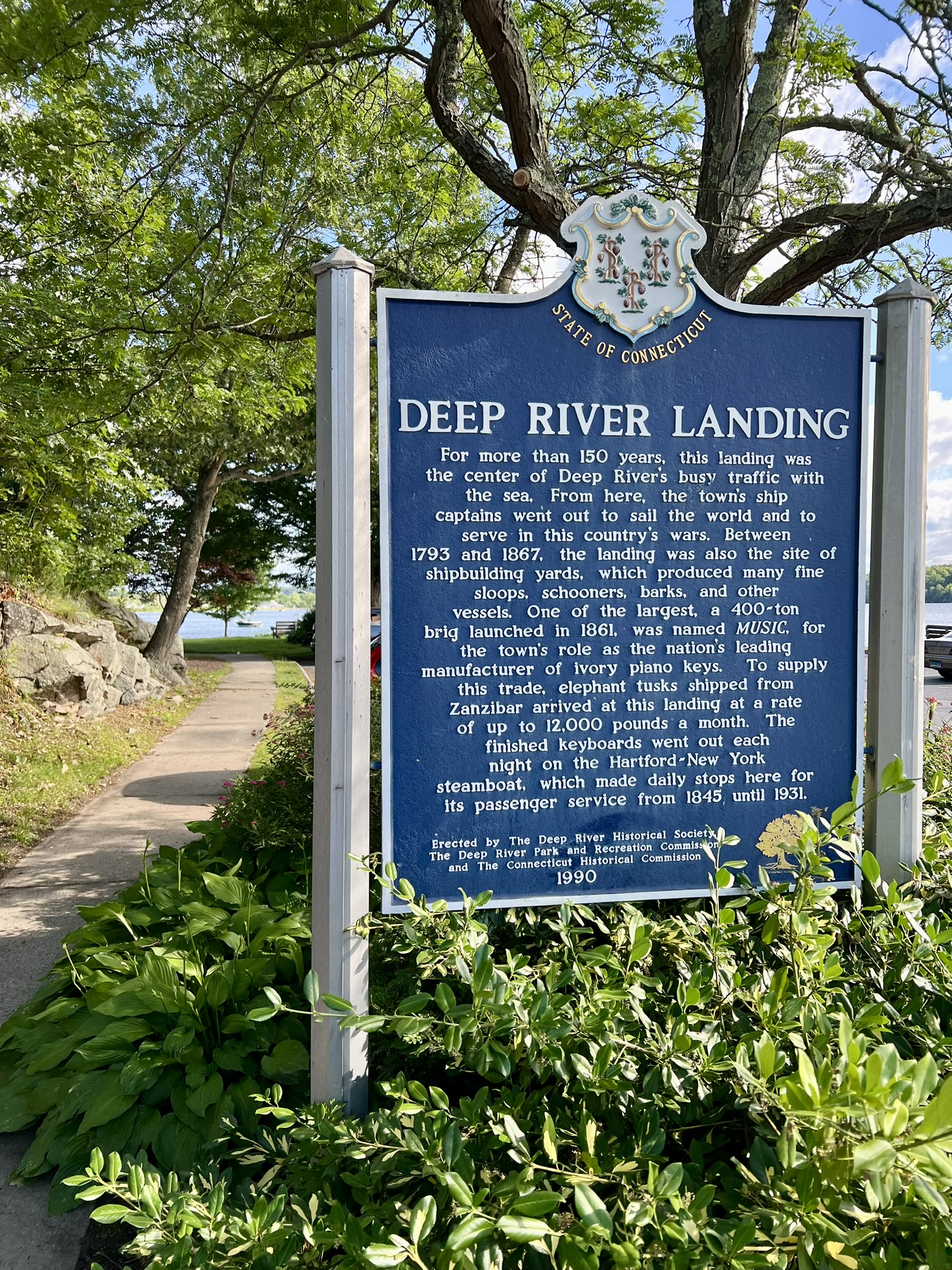 From the Chester/Hadlyme Ferry, continue south on 154 and take a detour to visit Deep River Landing. As the sign proudly notes, “[f]or more than 150 years, this landing was the center of Deep River’s busy traffic with the sea. From here, the town’s ship captains went out to sail the world and to serve in this country’s wars.” These days, Deep River Landing is a beautiful town park. While the sign specifies that the space is for town residents and guests, I’ve never had a problem stopping for a brief visit.
