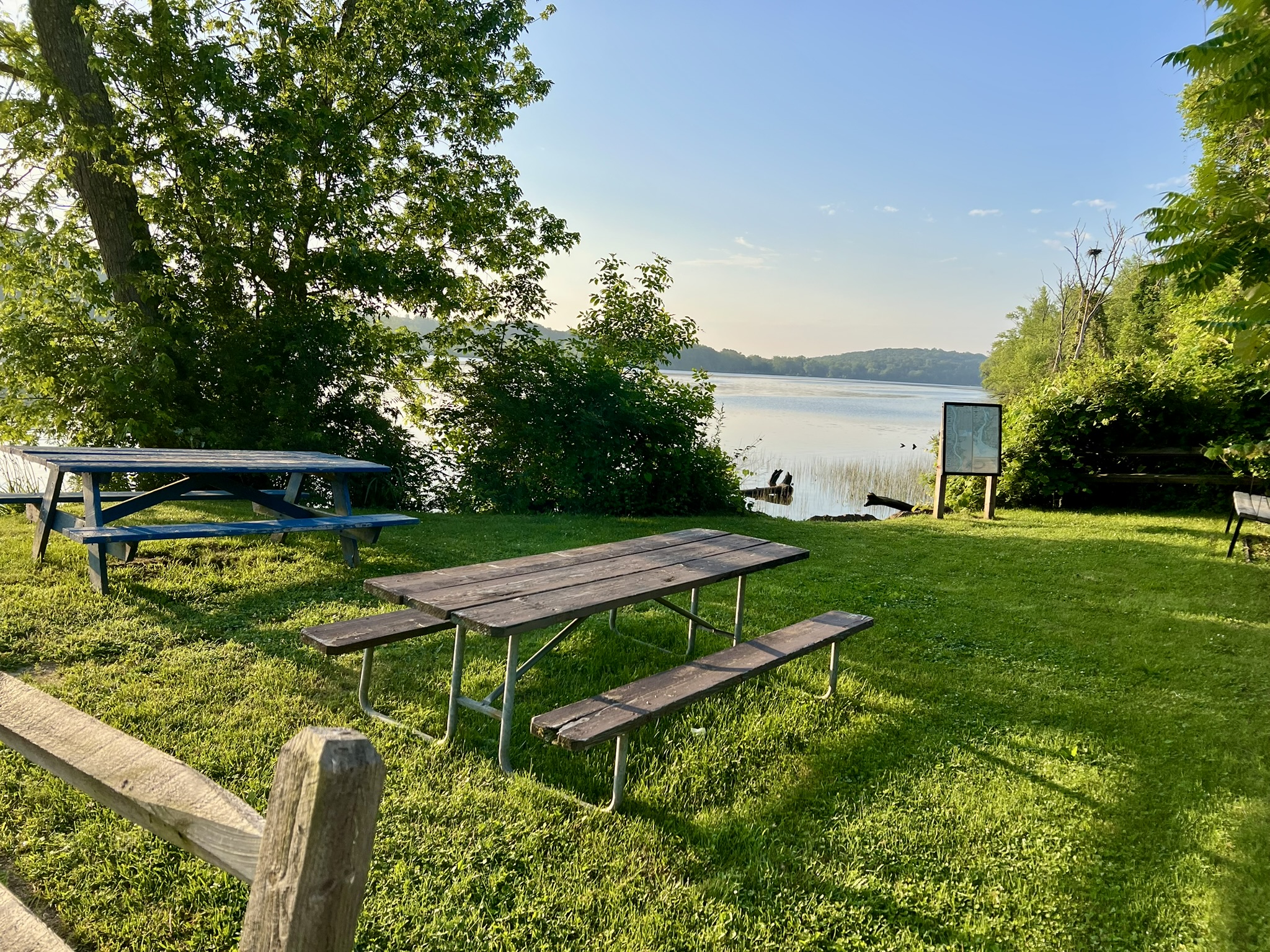 Continuing south on Route 154, your next stop could be Haddam Meadows State Park. Haddam Meadows is an ideal location to get close to the Connecticut River. There is a boat launch and dock, and a trail that goes parallel to the river with several stepped access points and picnic facilities. I wrote about Haddam Meadows in this January 2024 blog post on Sunrise Adventures, which has park information and a map link.